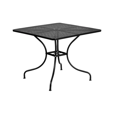 Oia Commercial Grade 35.5" Square Indoor-Outdoor Steel Patio Table with Umbrella HoleSky Blue