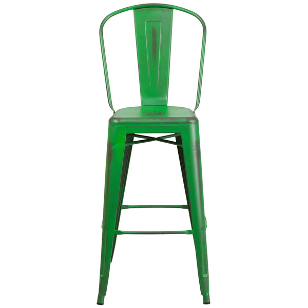 Durably constructed, this bar height stool will instantly modernize your restaurant, cafe, or bar by adding splashes of color. Metal barstools with backs provide a comfortable sitting experience, the full back is ergonomically curved and includes a vertical slat. The lower support braces double as a footrest, promoting proper posture.